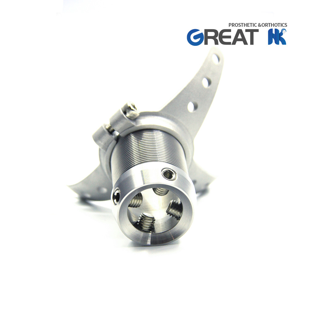 Cuenta con un receptor piramidal giratorio de 40 mm, 55 mm, 70 mm, 85 mm de longitud y un brazo de anclaje en ángulo, que está destinado al posicionamiento posterior.Esto permite posicionar fácilmente el adaptador para lograr una alineación óptima de la prótesisSe tiene en cuenta la posición de flexión de la extremidad/soca residual residual, no se requiere ninguna o sólo poca flexión manual.